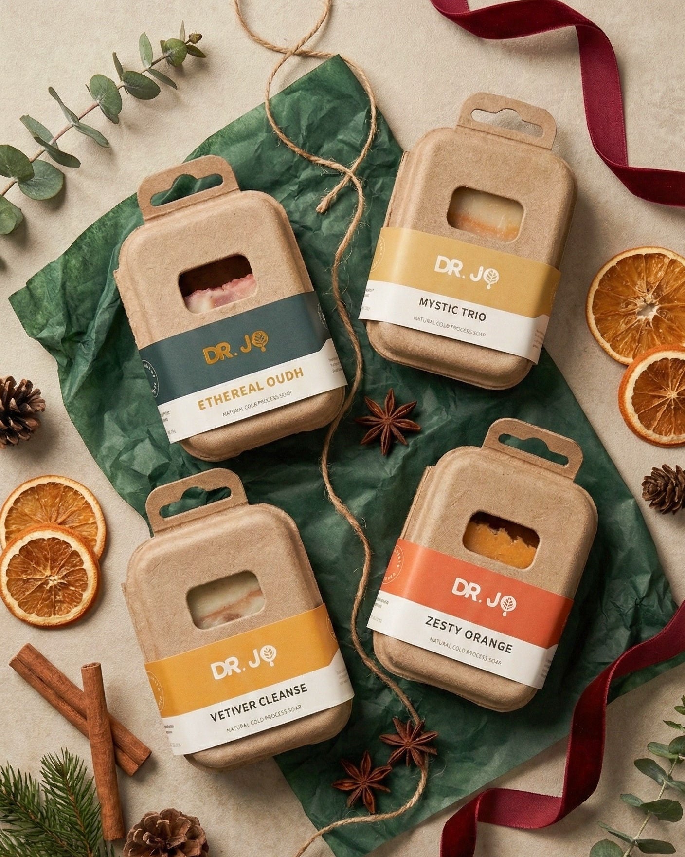Make gifting effortless with our Festive Gift Set – a curated bundle of 4 handcrafted cold-process soaps from Dr. Jo.